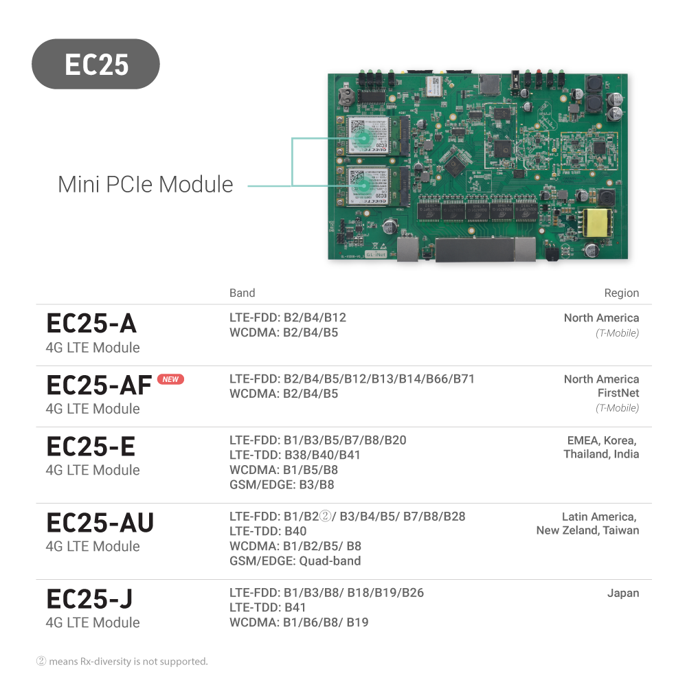 • Dual-band 4G LTE Gateway: 300Mbps(2.4GHz)+867Mbps(5GHz) with built-in 4G LTE module.