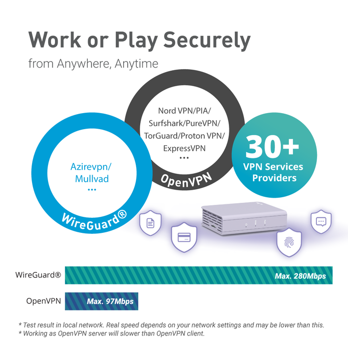 • Add Extra Layer To Your Security: Tor service installed. Supports 30+ VPN services with impressive VPN speeds. AdGuard Home Supported. Encrypted DNS with Cloudflare or NextDNS.
