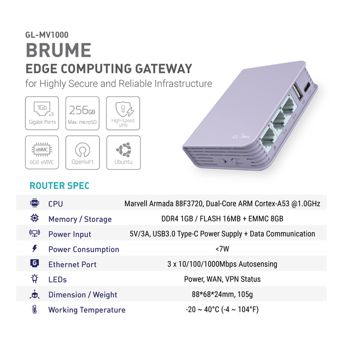 Brume (GL-MV1000) Edge Computing Gateway | High-Performance VPN | No WiFi Module