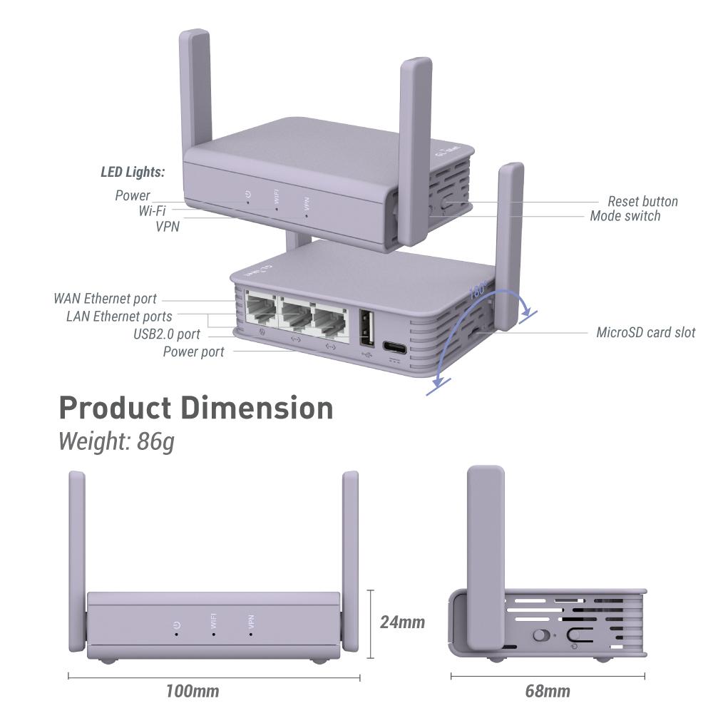 Brume-W (GL-MV1000W) Edge Computing Gateway | High-Performance VPN | 2.4GHz WiFi