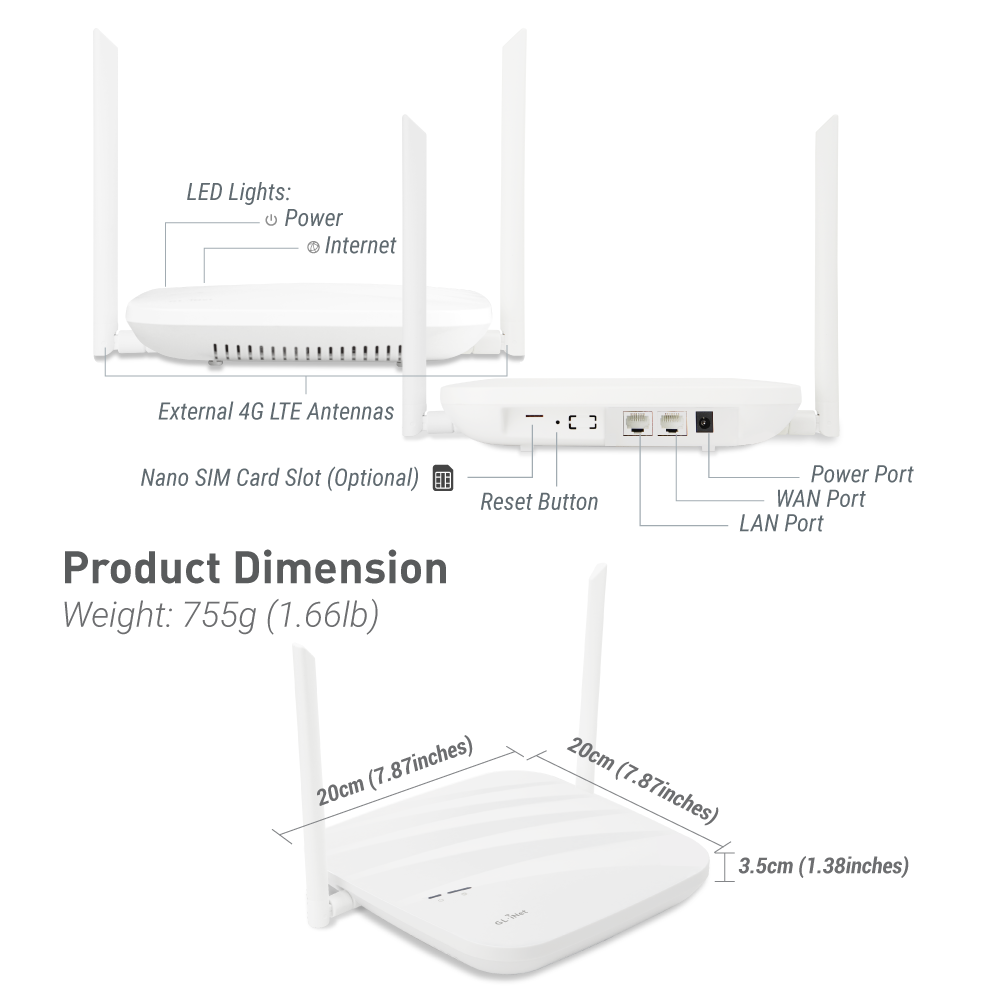Built-in 4G LTE Module for LTE Version: Automatically 4G LTE Internet backup, connection automatically moves into 4G LTE wireless network if the Ethernet Internet fails.
