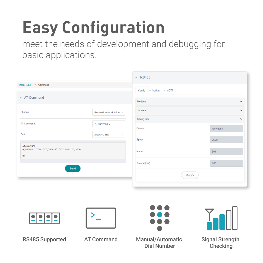 - Easy Configuration: Supports AT command, manual/automatic dial number, and signal strength checking in our new admin panel for better management and configuration.