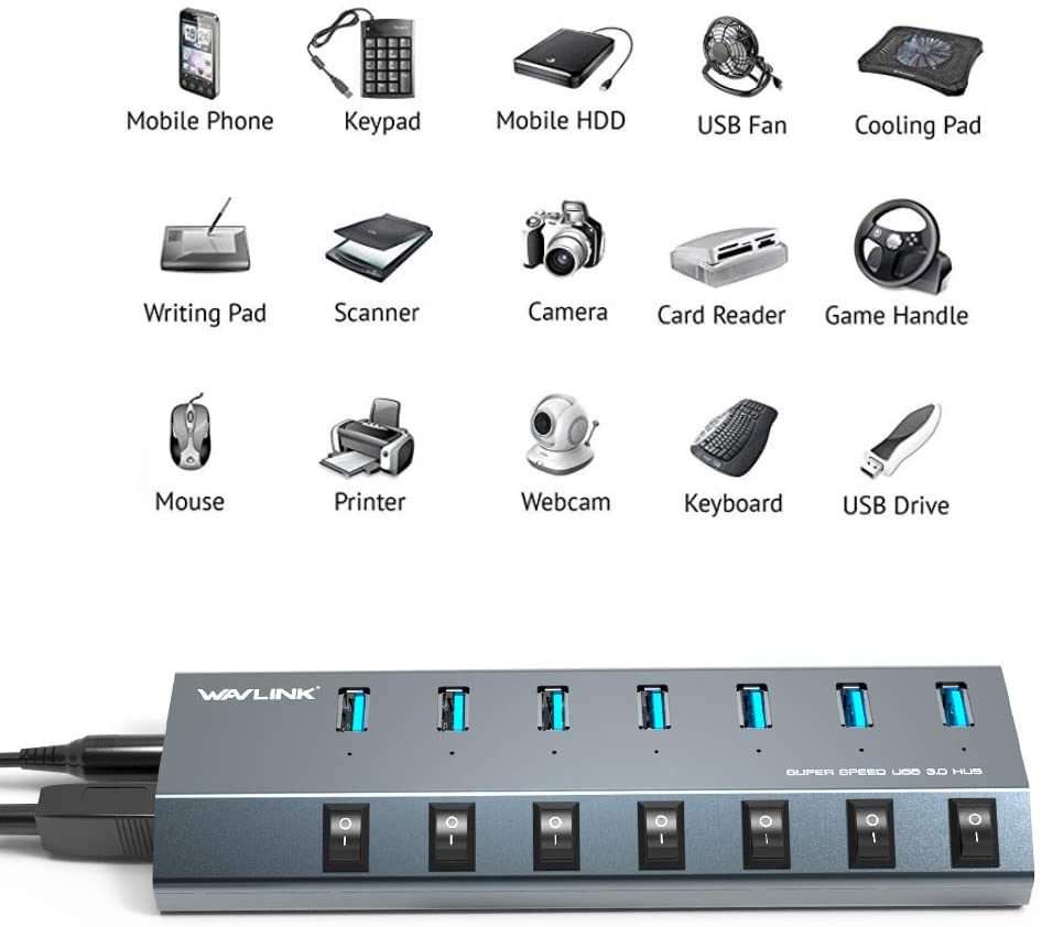 Be the first to review “Powered USB Hub 3.0, WAVLINK 7 Port 48W Charging Slim USB 3.0 hub Powered, 5V/2.4A with Individual On/Off Switches LED Indicator”