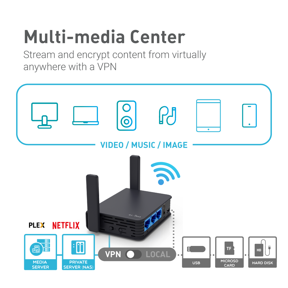 • Security & Privacy: OpenVPN & WireGuard pre-installed, compatible with 30+ VPN service providers.