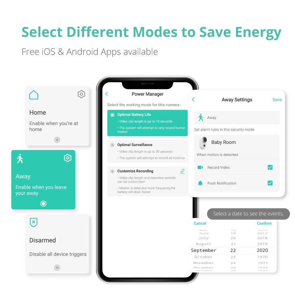 - 【Rechargeable Long Life Battery & Energy Saving Mode】Built-in 5000mAh rechargeable batteries last up to 4 months (10 triggers/day). It allows you to place it indoors and outdoor without worrying about continuously charging it. Enable energy-saving mode in the app to optimize battery life. (NOTE: Press the power button twice to reset the camera, you will hear a notification tone after reset successfully. Please FULLY CHARGE the battery before using it for the first time.)
