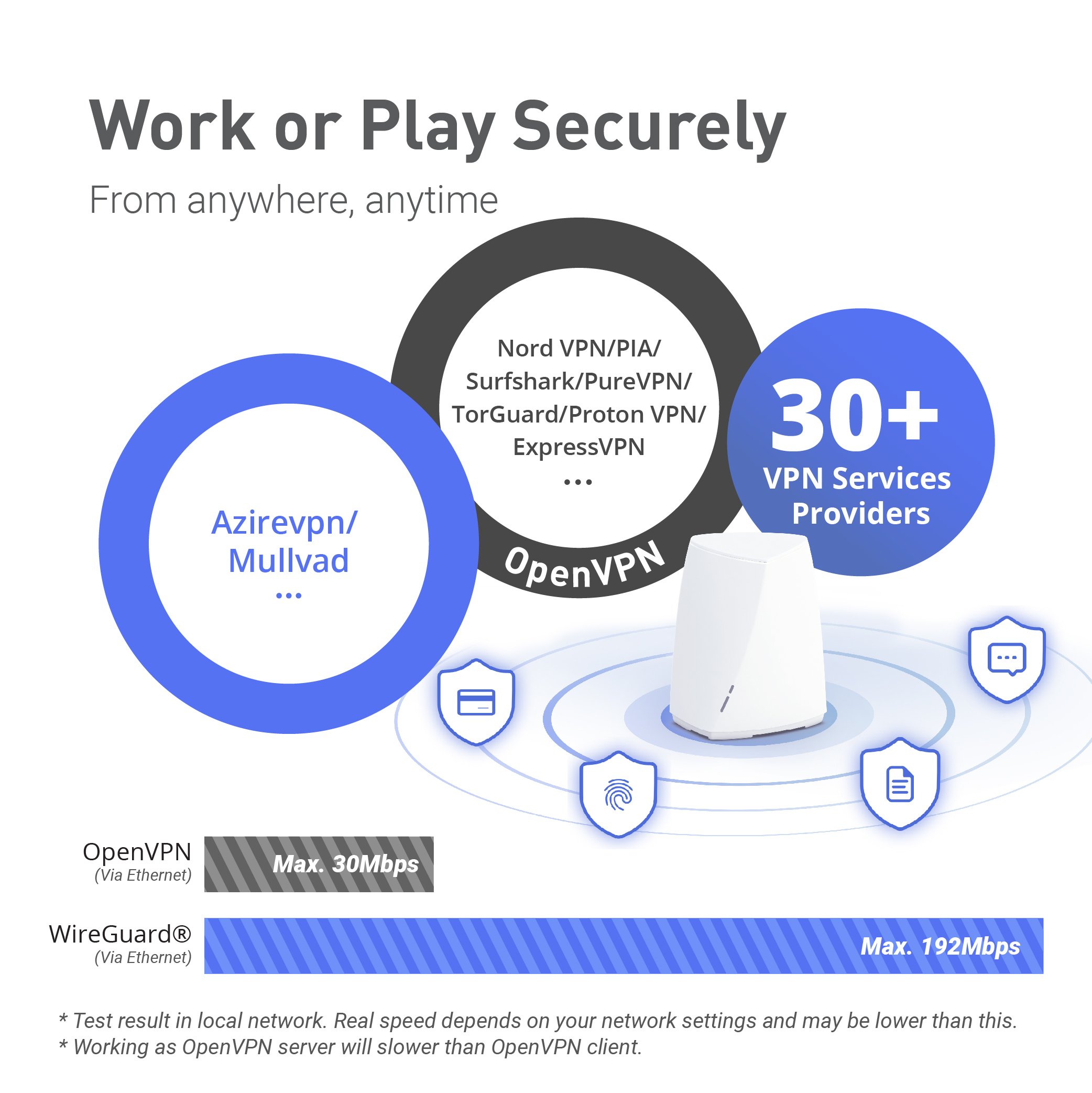 Strengthens Internet Security: OpenVPN and WireGuard pre-installed, compatible with 30+ VPN service providers. Encrypted DNS with Cloudflare or NextDNS. AdGuard Home Supported for blocking ads and online tracking.