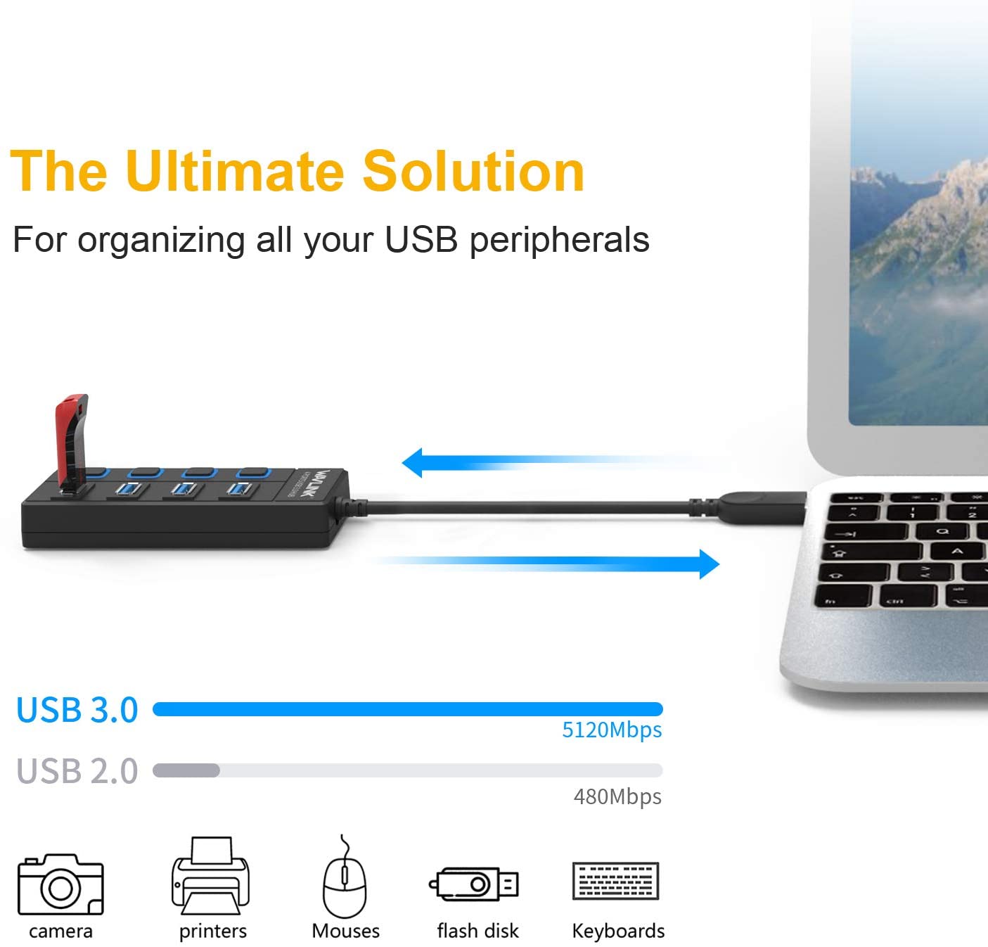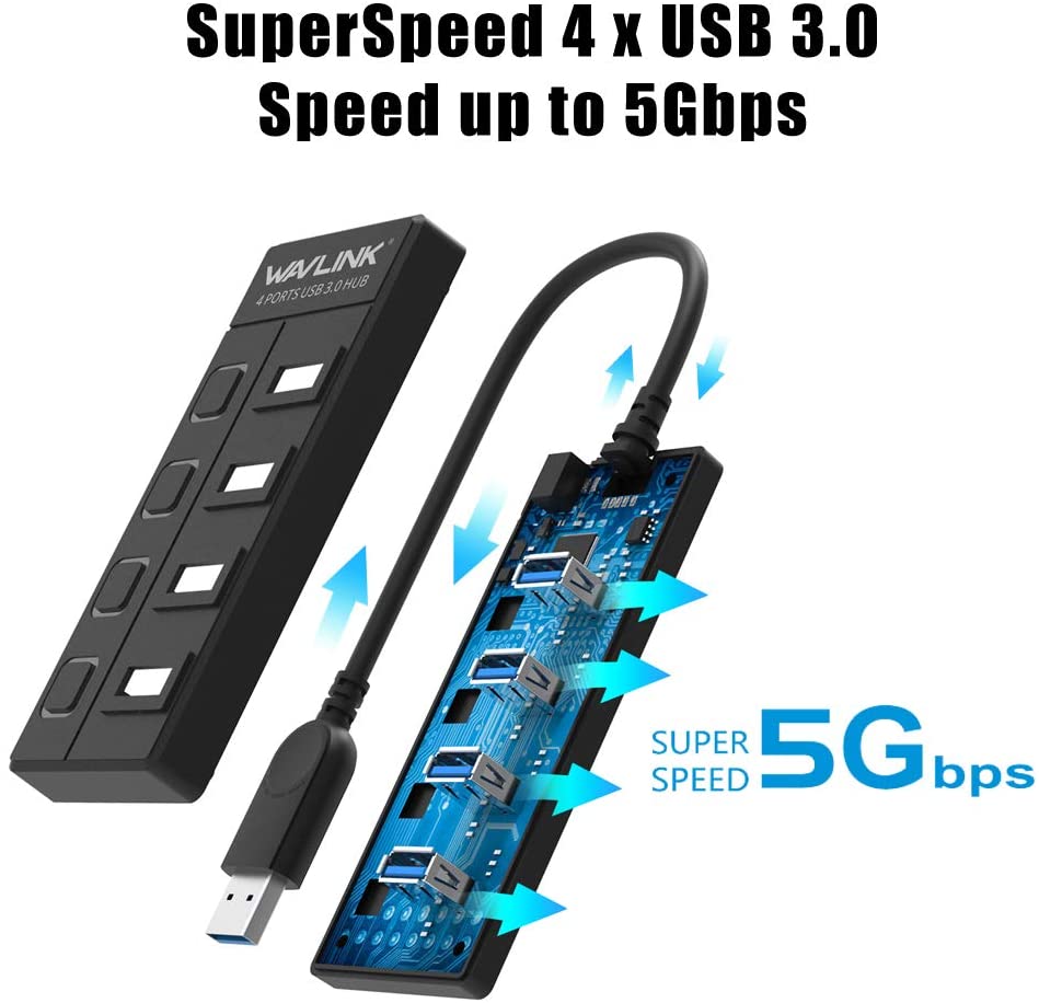 - 【4 USB 3.0 Ports with Individual Power Switches and LEDs】 – Compact travel size, easy to extend your PC USB3.0 port; Individual Switch and LED to power peripherals individually.