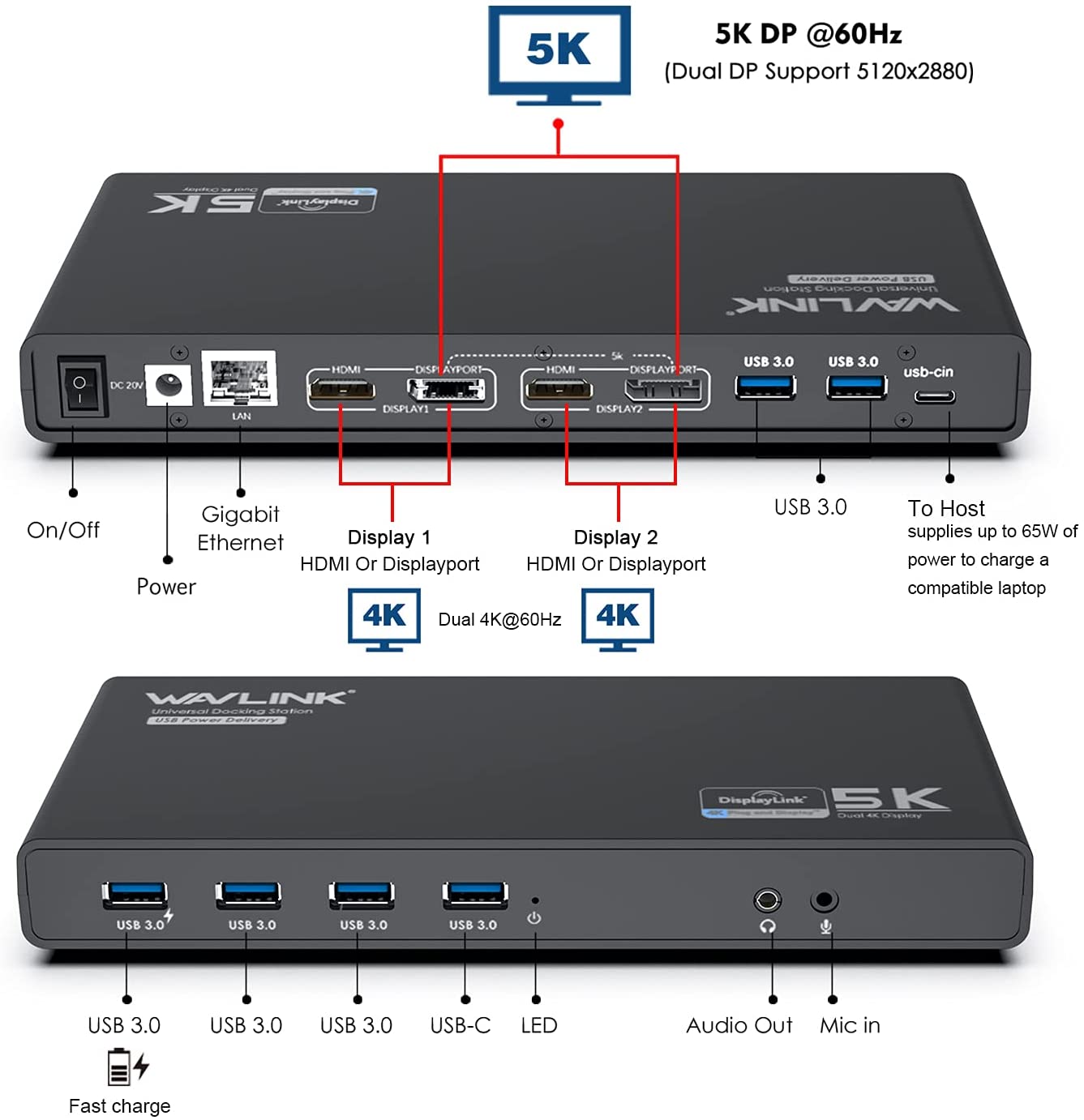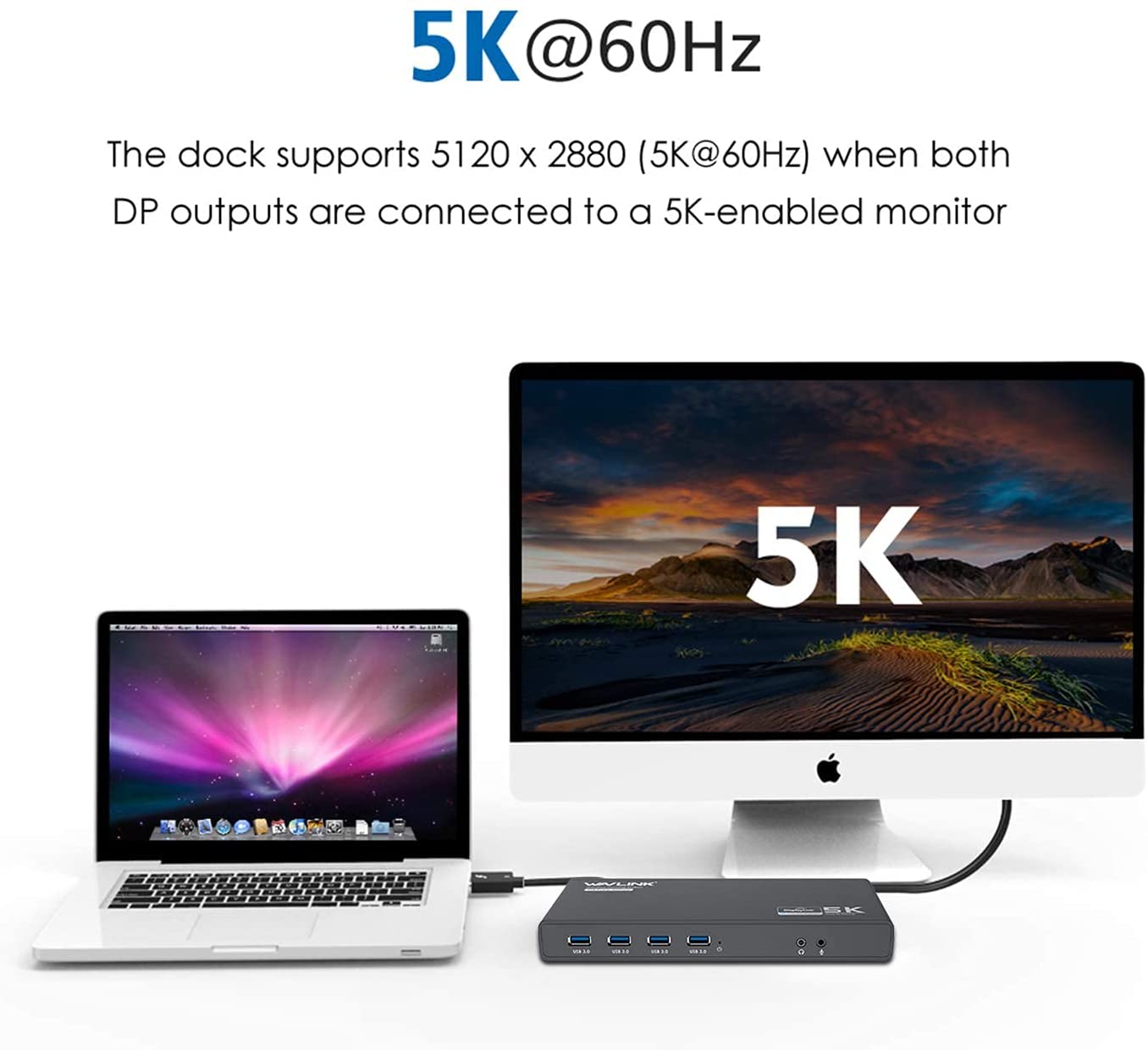 - 【Dual 4K Display】2x DP1.2 and 2x HDMI 2.0 support dual HDMI/HDMI+Displayport at resolution up to 4K (4096 x 2160@60Hz), 5K (5120 x 2880@60Hz) single monitor display when using dual Display Port. Backward 3440×1440, 2560×1440, 1920×1080 (1080P) in both Extend and Mirror Video Mode.